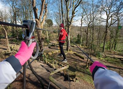 Our Tree Trek Aventure was designed with the family in mind, you can either harness up and join in or cheer on from the forest floor. With a plethora of varied high rope adventures this unique course has ancient 200- year-old Oak trees, streams, river views and a Via Ferrata section making this is a one of a kind experience. Unleash your inner wildness and get the blood pumping in Ireland's premier high ropes course. Let us inspire you to challenge yourself in our fierce and stunning terrain.