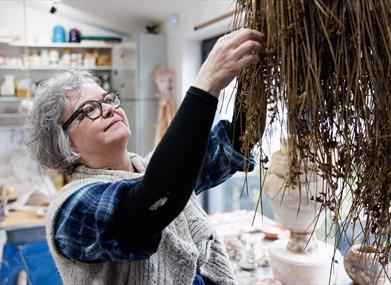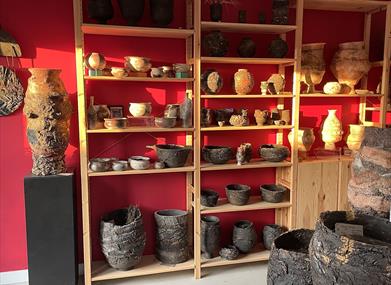 On the site of an old smithy, her rural studio has a small gallery adjoining her workshop. A covered outdoor space shelters her kilns and is an ideal location to learn alternative firing techniques such as pit firing, smoke firing, barrel firing and obvara. A range of workshops are on offer to suit a wide range of interest and abilities.