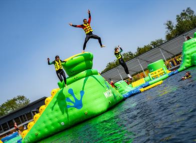 All that’s needed is a wetsuit and a buoyancy aid and you’re free to explore the bumps, bends, bridges, towers, slides and jumps that extend across the gigantic inflatable Aqua Park.