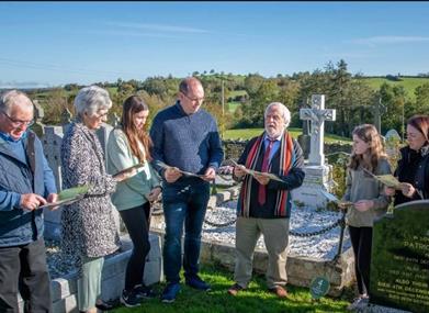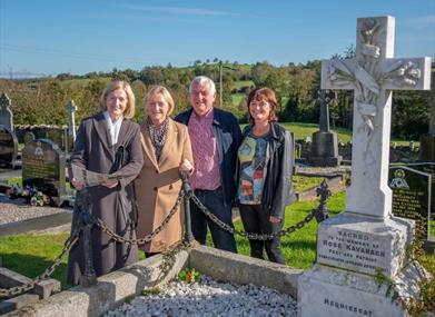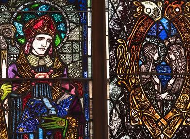 The St Macartan window was erected in memory of a young woman Rose Kavanagh (c1859-1891) a local editor, poet and key figure in Irish literature who is interred in the graveyard. The third memorial window depicts St Patrick and commemorates a ‘Mrs Campbell'. This Katharine Campbell (nee Kavanagh) was the sister of Rose Kavanagh. The mother of Rose and Katherine Kavanagh was first cousin to the Rev. John Hughes, therefore making the three memorial windows within the chapel a family set.