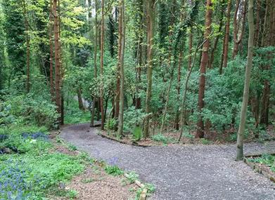 Mostly unsurfaced paths, main entrance is a tarmac road