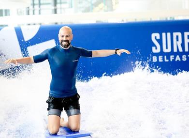 Catch a wave, whatever the conditions outside at Northern Ireland’s first ever indoor surf simulator.Surf Belfast, uses pumps to fire a constant 5 metre wide wave sheet to challenge riders. It has been designed for a variety of age groups and skill levels and has four different performance settings to ensure that the ride can be enjoyed by just about everyone.