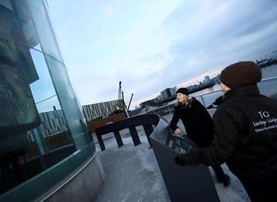 The Great Light is located on the new Titanic Walkway, a 500 metre walkway on Victoria Wharf, which connects the Titanic Slipways to HMS Caroline and the Thompson Dock, giving visitors the perfect opportunity to learn about the maritime and industrial heritage of the area on their way to the Great Light.