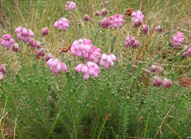 The Biodiversity Trail is a short walk which lets you get a feel for the Sperrin landscape and is fully accessible for buggies and wheelchairs. As you approach An Creagán visitor complex, turn left and walk up the slope between the large stones at the beginning of the route. As you come to the brow of this incline you will have a view to your left across a 22 acre (9 hectare) remnant of the once much larger Creggan Bog. This is a small piece of undeveloped raised bog which is home to unique colonies of plants including 14 different types of sphagnum moss, cranberry, crowberry, bilberry and the insect eating sundews, amongst others. A gravel path leads you along the edge of this bog with a short board-walked outshot giving you the chance to get out into the midst of this soft, peaty landscape without getting your feet wet. At intervals you will come across interpretative panels which give a description of some of the native plants. Continuing along the gravel path you will notice to your right the hollowed out landscape of a decommissioned gravel quarry. Closed since the 1960s it is now populated by willow and birch with a system of ponds running through the quarry floor. These are home to the protected smooth newt as well as our common frog, who puts on rather a spectacle during the spawning season when they gather in their hundreds in search of a mate. You will come to a junction where you take the right fork through a wooden gate marking the entrance to the quarry, now known as the “Wild Woods” and used by groups of young children for natural, outdoor play. Pass through the gate (leaving it in the position you found it, open or closed!) and you will see how the vegetation changes in this gravelly, well-drained soil – a stark comparison to the moist peat of Creggan Bog. Bell heathers, gorse, bramble and devil’s-bit scabious reside here, amongst others. The steep sides of this quarry provide a glimpse into history, where glacial activity once deposited mounds of sand and gravel before the “big thaw” allowed the surface to re-vegetate and lay down peat, which can be seen as a distinct layer on top. As you gradually descend you will pass three man-made ponds on your left before coming to a second gate which marks the exit of the Wild Woods and the entrance to the community garden. Past the raised beds you will come to Ballybriest Wedge Tomb on your left. A nice example of its type and once housing cremated remains and assorted grave offerings, it was relocated here in 2001 as it was threatened by development in its original position on the slopes of Slieve Gallion. Passing the duck pond on your left you will come to the courtyard of An Creagán centre and back to your starting point.