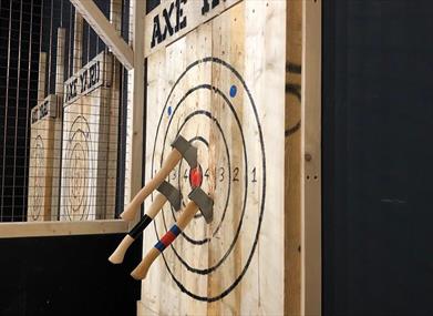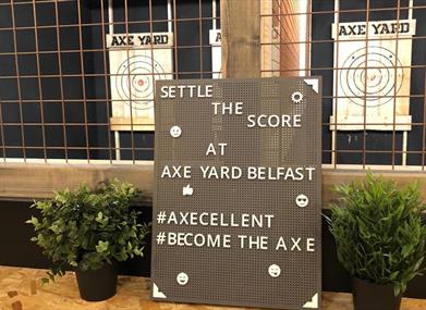 Axe Yard Urban Axe Throwing Belfast is an awesome activity where you get to throw real axes at wooden targets.Who should throw Axes? Absolutely anyone & everyone! (18+) Axe throwing is perfect for family, friends, corporate groups, team building and Hens & Stags. All bookings include a dedicated coach to teach you all need know, we aim to have you sinking steel in no time, No Axe-perience necessary! Trust us when we say there is no feeling quite like it, especially when you hit that Bullseye!