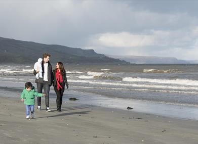 Just across the road from the beach, you'll find a car park, a shop offering refreshments and a wide range of ice creams, and Ballygally Castle Hotel. A short drive (1km) north along the Coast Road (A2) takes you to the Halfway House Hotel. Families will also enjoy the nearby children’s play park at the Croft Road and Cairncastle Road junction. Public toilets and baby-changing facilities are conveniently located at the far end of the car park.