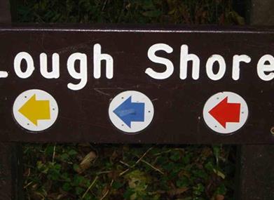 There are a series of circular walks from the car park following forest tracks through the woodland and along the Lough shore. The walks are clearly waymarked with red, blue and yellow arrows. The following route description is for the red route: Leave the car park by going left of the building at one end, and quite soon you'll pass below the ruins of the castle, dark and overgrown. Now in ruins, Castle Caldwell was built in 1612 during the time of the Plantation of Ulster. Follow the path, keeping to the shoreline, and at the crossroads take the way signed to Rossergole point, with views across the lough to rolling farmland. The return walk is along the southern shoreline until eventually the path reaches a small picnic area and leaves the lake shore, and you turn left at the forest road. Quite soon turn right onto a well used path through an area of beech woodland, suddenly coming to a ruined ivy cloaked castle, unfortunately unsafe to enter. Continue along the path almost to a post and rail fence at a sharp bend in the minor county road. Turn right and you'll soon be back at the car park. This walk is situated in a working forest environment and may be subject to diversion and closure from time to time. Up to date information is available on the Forest Service web site - link below.