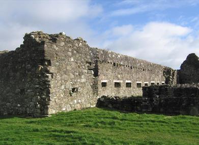 The latter site does not appear to have survived an attack by Sir Phelim O'Neill in late 1641 and from the historical record does not appear to have been occupied since. The ruins consist of a rectangular bawn with square flankers at each corner.