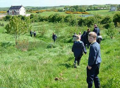 The new wood was formerly an area of grazing fields set upon a drumlin in the rolling hills landscape typical of the Ards Peninsula, with gentle slopes down to the nearby lough and farmland. From the top of the wood you can see down to Strangford Lough and across the Portaferry House lands.Start Point:
