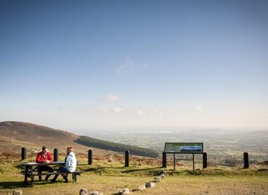 The Cuilcagh Way is a waymarked route that stretches for 33km through a breath taking patchwork of habitats in southern Fermanagh. The route can be walked in sections and provides stunning views, fascinating geology, mystifying wildlife, captivating archaeology and natural history: enough to whet anyone’s appetite for adventure. The Cuilcagh Hiker’s Trail is a way marked linear route that will appeal to experienced walkers who enjoy spectacular views and are interested in undertaking a vigorous, challenging walk in the wilderness. The terrain consists of a mountain path so some parts of the route can be very wet and boggy, particularly after a rainy period. Due to the often challenging weather conditions on Cuilcagh Mountain, careful planning, constant vigilance and good navigation are required all year round. The trail is a richly varied one in terms of topography and features, and includes walking over a glacial landscape in a mountainous environment passing by dry valleys, limestone pavement, mountain rivers and sandstone outcrops. This area is also managed by the Royal Society for the Protection of Birds so keep alert for signs of the rare Golden Plover nesting in the area. As the route begins on the mountain there is no significant climb until the steep and vigorous 300metre scramble up the mountain face through rocky outcrops. Arriving on the summit you can’t miss the ancient cairn (the remains of a burial mound dating from the Bronze Age 2,500 – 500 BC). The summit provides a great vantage point to view the picturesque lowlands of County Fermanagh and Cavan and on an exceptionally clear day you can see both the Irish Sea and the Atlantic Ocean along with several surrounding counties. Route description written as if you are starting the walk from the Gortalughany Viewpoint car park. Walk Highlight The summit plateau of Cuilcagh Mountain marks the border between County Fermanagh (in Northern Ireland) and County Cavan (in the Republic of Ireland) with a height of 666 metres (2,182 ft) it is the highest point in both counties and the 165th highest mountain on the island of Ireland.