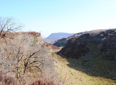 Section 1 Cladagh Glen (Total Distance – 1.6 miles Highest Point – 175m) The Cuilcagh Way begins in the car park at Cladagh Bridge. Cross the stone stile or pass through the wooden gate and follow the wide stone path into Cladagh Glen. Go through the next wooden kissing gate to enter Marble Arch Caves Global Geopark. The path follows the Cladagh River taking you to a series of steep wooden steps to the left of the arch after which the caves are named. At the top of the wooden steps (121 in total) is a concrete path, which leads you through two kissing gates to Marble Arch Caves Visitor Centre. The Way then follows the tarred avenue to Marlbank Loop Road. Go right for 340m along the Loop and then left into Cuilcagh Mountain Park. Section 2 Cuilcagh Legnabrocky Trail (Total Distance - 4.6 miles Highest Point – 666m) *PUBLIC NOTICE* There is temporarily no access to the Cuilcagh Way beyond the end of the boardwalk for conservation reasons. The route will be temporarily closed at the end of the boardwalk to relieve pressure on the sensitive habitat in this area. Marble Arch Caves UNESCO Global Geopark continues to work towards a long term solution with relevant authorities to conserve this fragile habitat while still allowing visitors to appreciate and enjoy this stunning landscape. We ask visitors to keep to the designated path and to turn at the end of the boardwalk. The habitat in this area is fragile and we kindly request that walkers respect the environment and do not stray from the designated route. Your cooperation with this is appreciated. From the Mountain Park car park, the Way leads towards the flat, tabletop summit of Cuilcagh Mountain. The walk takes you up a long stony track that climbs for 4km (2.5 miles) at this point the walk joins the boardwalk. As you ascend, take time to admire the wonderful vistas behind you. On the summit of Cuilcagh Mountain is a Bronze Age cairn dating back to the period 2,500 to 500 BC. This is an excellent vantage point and on a clear day both the Atlantic Ocean and Irish Sea are visible. The vista crosses over counties Tyrone, Donegal, Cavan, Leitrim, Sligo and Roscommon. If the weather is particularly favourable you might even catch a glimpse of the Nephin Beg mountain range in County Mayo. Section 3 Cuilcagh Hiker’s Trail (Total Distance – 5.6 miles Highest Point – 666m) From the summit of Cuilcagh Mountain the descent is steep. The landscape below is a blanket bog studded with stones and clumps of heather. Exposed patches of limestone display their fossil rich make up. A pothole is the term used to describe the entrance to the caves due to their vertical nature. The descent continues and reaches a plateau where the pathway leads out to the Gortlaughany Viewpoint. Section 4 Legacurragh Valley Trail (Total Distance – 4.2 miles Highest Point – 310m) Returning from the Gortalughany Viewpoint along the plateau the Way continues through the valley between Trien (424m) and Benaughlin (370m). The next section crosses relatively dry land and takes you past a cairn and ancient burial site at Myalla, known locally as the Giant’s Grave. The blanket bog which covers the mountain was once used a fuel for Florence Court. The next section crosses relatively dry land and takes you past a cairn and ancient burial site at Myalla, known locally as the Giant’s Grave. From here the Way passes through thick heather before entering the tree cover offered by a forest of Sitka spruce, lodgepole pine and larch. After a short, uneven section, a hard-surfaced lane takes you through Cove Wood to a wider stone lane coming downhill, around a number of sweeping bends to a T-junction. Turning right, you pass Glen Wood Forest Nature Reserve before making a left on to a much narrower path which weaves its way through Florence Court Forest and Cottage Wood, in part alongside and occasionally over a number of small streams. When you come to a number of other paths and tracks follow the Cuilcagh Way signposts to the main tarred avenue leading to Florence Court House. Cross the avenue and follow the path leading to the left taking you to the Forest Service car park. Section 5 Florence Court Forest (Total Distance - 4.5 miles Highest Point – 270m) The initial part of the walk from the Florence Court Visitor Centre car park 1 skirts around the grounds of Florence Court House which enjoys a majestic countryside setting. The charming 18th century mansion offers guided tours and the estate provides good facilities for relaxation and refreshment in the Stables Tearoom before pressing on with your walk. When starting your walk from the car park, follow the Florence Court waymarked red trail, for the next few kilometres it takes you along narrow tracks which twist and turn an undulating course past mixed deciduous woodland crossing the Larganess River in several places, the constant burbling of the river making this section a delight. As you reach the edge of the forest you will pick up the trail sign for the Cuilcagh Way (Florence Court Forest Trail). Things get a little more rugged as you traverse across open farmland edged with dry stone walls. If you are vigilant, you may spot the elusive Irish hare. Larger than rabbits, adult hares have black tips on their ears and their longer back legs give them a distinctive walk or ‘lope’. Gortmaconnell Rock is a prominent feature on the landscape ahead, the trail skirts around the base of the hill to descend to the country road. The last 1.5km stretch of your journey will take you along the Marlbank country road to the Marble Arch Caves Visitor Centre. Please be aware: · It is important to choose a route that suits everybody in your group. You are strongly recommended to walk Cuilcagh Mountain with OSNI or OSNI Discover Series map 1:50,000 Sheet 26 available in most shops and Visitor Information Centres. · Weather conditions on Cuilcagh Mountain can be quick to change & inhospitable all year round making way finding diffi