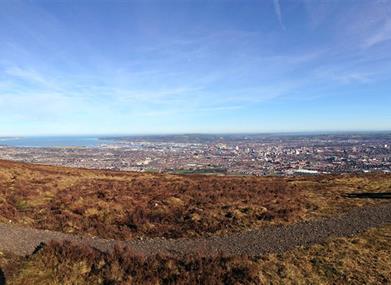 View the city of Belfast from a different perspective, from above! The Divis Ridge Trail allows the walkers to enjoy 180 degree views across the city and further afield including the Antrim Plateau to the north, Scotland to the east and the Mourne Mountains to the south.Start Point: