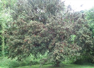 Starting from the Visitor Centre, take the bridge and turn left, taking care when crossing at the Admission hut. Follow the trail and bear right, passing the Lady's Well on your right. The trail rejoins the main path here, note this part of the trail is used by horse-riders and cyclists. Continue to follow the blue trail signs, passing alongside the Broad Meadow with views of the house. When Florence Court house was built, this next section of the path along the Broad Meadow was kept clean of trees and obstructions – even the grazing animals you see today would have been kept out of the field to ensure the perfect view of the house in it’s gentle hill was preserved. Here the Red and Blue trails separate. Take a minute to visit the Florence Court yew tree ahead of you before returning and taking the red trail to the left, crossing a wide bridge. Follow the Claddagh River upstream along the Riverside Walk, crossing part-way at a small footbridge. The Florence Court yew tree, taxus baccata ‘fastigiata’, is reported to be the “mother” of all Irish yew trees. It was discovered as part of a pair on Cuilcagh Mountain in 1740 by local farmer George Willis. He presented one to William Cole, 1st Earl of Enniskillen which was planted on the estate. This specific typr of yew can only be propagated by cutting and has had hundreds over the years which gives it a very distinguished appearance. Take a rest here at the top of the Riverside Walk before following the path to the right and heading down the hill. After about 200m take a left turn, facing the steepest climb on the red trail. Take your time on the way up. At the top of the winding climb you'll reach the viewpoint. Continue on the path as it descends, taking care of your step. You can choose to extend your walk onto the Ulster or Cuilcagh way from this point, or turn right and continue to follow the red trail past the Kennel Field. From the top of the viewpoint on a clear day you should be able to see across much of Fermanagh, including Upper Lough McNean, Belomore mountain, Enniskillen town, Brougher Mountian, parts of Upper Lough Erne and Knockninny, amongst others. Finishing your descent and crossing the Eel house bridge, you are now back onto the main estate. To finish your walk early, continue straight on past the Sawmill to pass the rear of the house. To continue on, take a left after the bridge to walk a partial loop around the Killymanamly path which will bring you to the top of the path to the Walled Garden. Take this path to your left to finish the trail and return to the Visitor Centre. Your descent from the Red Trail will pass the historic Deer Park on the right-hand side. You might be able to catch a glimpse of the wall that still stands. The Deer Park was used to hold the Earl’s deer in the 1800s but has since fallen into disrepair. The ha-ha at the front of the house was built using stone taken from the deer park wall.