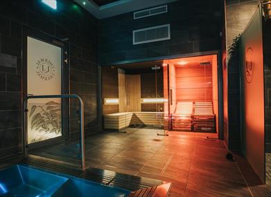 Facilities include a Thermal Area, Aroma Steam Room, Herbal Infrared/Sauna, Bucket Drench, Relaxation Suite and Hydrotub