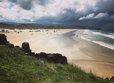 Starting from the beach entrance, where parking is permitted on the sand – the first section of the walk is a 1 mile stroll along the magnificent strand, heading in the direction of distant Mussenden Temple (a folly perched on the cliff edge). After 1 mile you will arrive at a line of wooden posts strung out across the beach, and at this point the walk heads into the sand dunes. The exact point of entry into the dunes, is marked by a lifebuoy station with a No. 10 highlighted on it – head for this & climb the wooden sand ladder. At the top of the sand ladder take the right forked sandy path (narrow) & keep an eye for white waymarker posts – these posts will lead walkers through the dunes to the estuary. Points of interest will include an active rabbit warren, with closely nibbled dune grasslands rich in wild flowers. What will you see? Look out for marram grass, as well as rare pyramidal & bee orchids during the summer months, along with colourful ‘carpet displays’ of plants such as bird’s-foot trefoil, wild pansy and thyme. Fairly quickly, you will then come out at the river edge and a different world of the Bann Estuary awaits – where birds will now feature (an identification book would be handy). One to look for is the handsome shelduck. After turning right onto the estuary you will eventually come to two gates. you take the gate on the left and walk the length of a small beach, then climb up onto the path at the end, this takes you to the end of the strand.After about a quarter of a mile the path leaves the river edge very briefly and climbs onto an old railway line embankment – walk along this old disused railway track for another quarter mile, until reaching the river edge again. At this point the path follows a small sandy embayment for about 200 yards (still going right), before climbing up a number of stone steps (still close to the river edge). From here the path continues along the river edge, only with a bit more height, due to the towering sand dunes rising up. Views really start to open up of the Barmouth, where the River Bann enters into the Atlantic, with the headlands of Donegal in the background. Look out for the relatively unspoilt Victorian seaside resort of Castlerock across the river. After a short distance the undulating path returns once again to the same beach where you first started on…the only difference being – you now have to walk the entire length of Portstewart Strand to get back to your start point…a tough life walking on a beach! To assist your return stroll, a system of numbered lifebuoy stations from 15 to 1 will count you down, in 200 yard intervals…Go enjoy! * Please note that National Trust entrance pricing applies for this walk. Please see the link below for details *