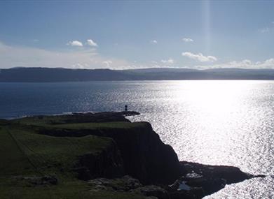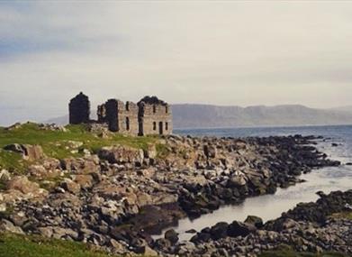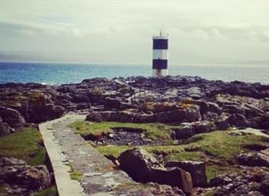 Continue following the fence in a southerly direction for 700m, to bear left along a fence to bring you back to the tarmac path. Land between the clifftop path and Rue Point Lighthouse is private, if you wish to continue to the lighthouse, follow the tarmac path in a southerly direction to reach the disused Kelp Kiln and the lighthouse. The route back to the harbour follows the tarmac path.