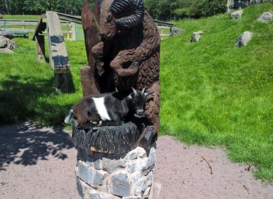 A stroll around the gardens will reveal interesting tree sculptures and it is possible to follow a tree trail of both native and exotic trees. A country styled play area has been constructed using wooden play equipment suitable for young children, with the aerial slide proving popular for older children.