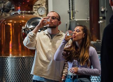 You’ll find the distillery in the old picture house, situated a stone’s throw from the harbour, where you can take in the historic sites of the iconic lighthouse before your tour. You’ll hear the rich history of the distillery and the town itself, once the busiest port town in Northern Ireland, with seafarers from across the globe landing with spirits and spices.