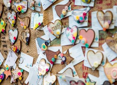 There's also a little quiet space - a light-filled prayer garden in a quiet corner of the cafe - where you can add your own thoughts, prayers or reflections to the walls.