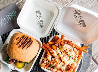 Wolf & Devour, set up in April 2015, is one of Northern Ireland’s most established and stylish ‘Street Food’ trucks! Stylishly kitted out, The Wolf Mobile as we like to call it, serves only the best local produce we can get our hands on. Run by a team of young enthusiastic ‘foodies’, the concept is to bring top quality, take away food to an event, wedding or street near you.We aim to use all local produce were possible. Our meat is sourced from Peter Hannan the Meat Merchant in Moira, fish from Sean McKeown in Bangor, vegetables from local farms such as Roy Lyttle’s and Helens Bay Organics and all sauces and glazes are made in-house in our own 5 Star Food Hygiene rated kitchen.