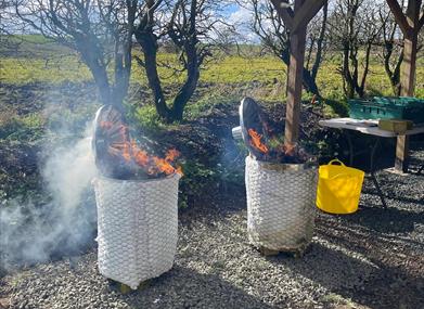 One Day Barrel Firing Workshops with Patricia Millar Ceramics at her rural studio in Lisnagunogue. On this Barrel Firing workshop, you'll have the opportunity to decorate your pots (provided*) with designs inspired by neolithic rock art. You'll also learn how to use oxides and organics to add colour before packing and firing a metal barrel. Finally, Patricia will teach you how to clean and seal your beautiful pots.