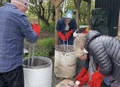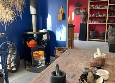Lunch - A Light vegetarian lunch is provided with a chance to chat and browse books on alternative firing techniques. As you wait for the barrels to burn out there is an opportunity for a field trip to Ballintoy or The Boat House Gallery, depending on the weather.