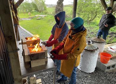 Make your own ochre paint. Using your ochre and paper resists, decorate your own pots inspired by local Bronze Age designs. Fix your designs by using a blow torch and sawdust.