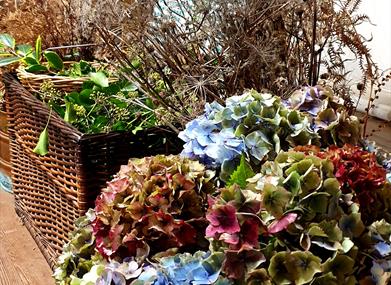 No experience is needed – our talented local florist, Kathryn Millar, will guide you step by step to design a beautiful large centrepiece with a candle, using an abundance of natural foliage, flowers, berries and seed heads gathered from the garden and its surroundings.